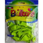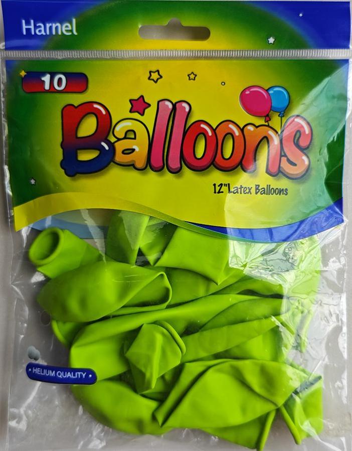 12" Lime Green latex balloons in a 10 ct. pack.