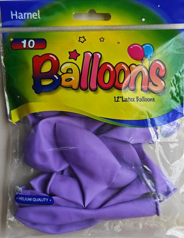 12" Purple latex balloons in a 10 ct. pack.