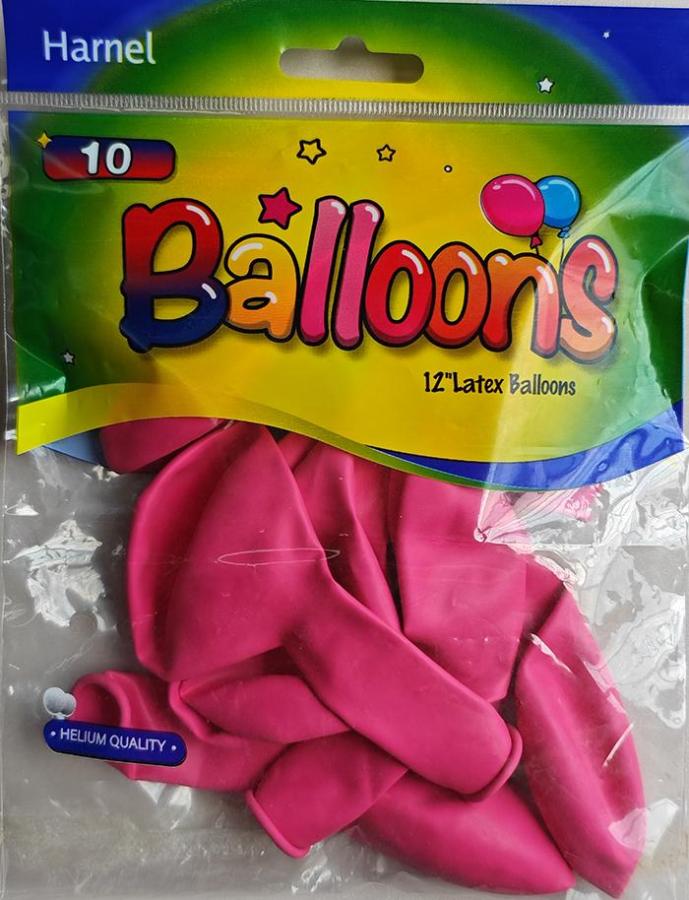 12" Hot Pink latex balloons in a 10 ct. pack.