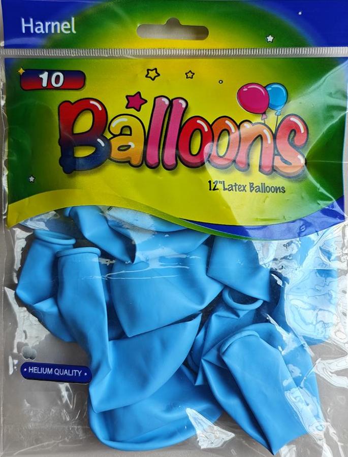 12" Light Blue latex balloons in a 10 ct. pack.