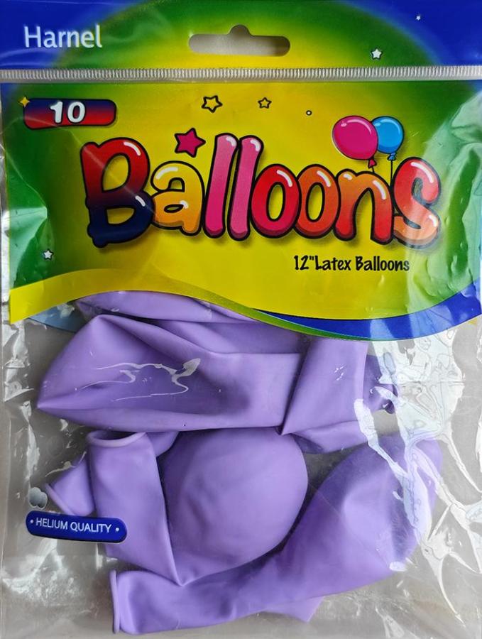 12" Macaron Lilac latex balloons in a 10 ct. pack.